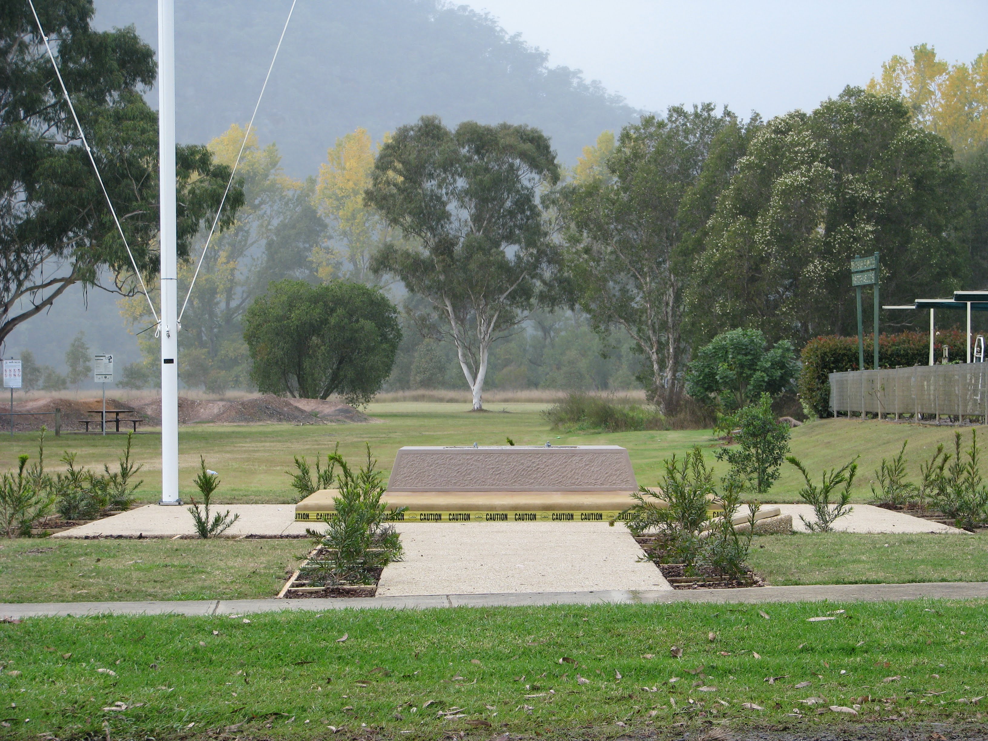 FLAGPOLE, PLINTH & CALLISTEMON GARDEN WAS FINANCED BY THE PRATT FAMILY OF WISEMANS FERRY. |